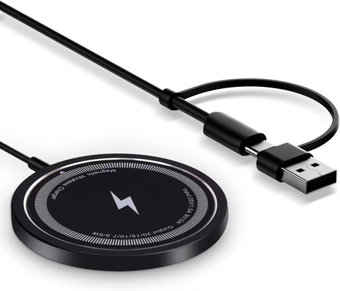 15W फास्ट 2-इन-1 मिनी राउंड एब्स वायरलेस चार्जर पैड