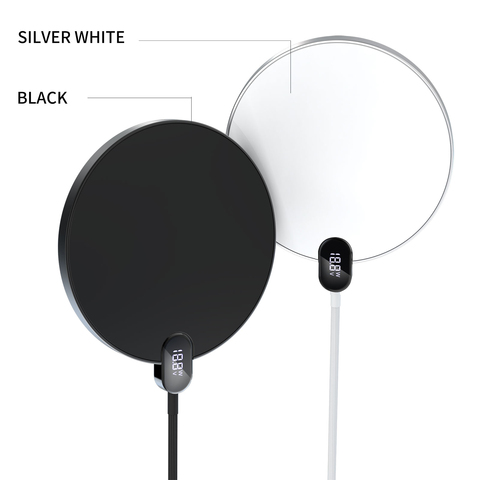 משטח מטען אלחוטי שחור 15w טעינה מהירה אלחוטי טלפון נייד עם מסך lcd עם כבל קבוע