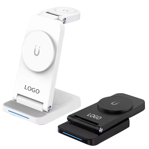 סיטונאי לוגו מותאם אישית נייד 3 ב-1 רב תכליתי טעינה אלחוטית מהירה לעמוד 15w טלפון 3 ב 1 מטען אלחוטי מתקפל