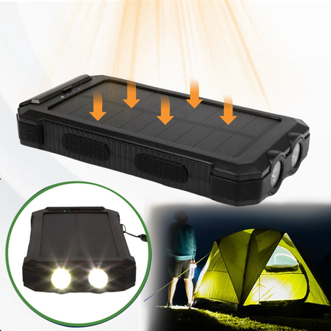 20000mAh không thấm nước đa chức năng kép USB cổng năng lượng mặt trời sạc la bàn dẫn ánh sáng ngân hàng điện