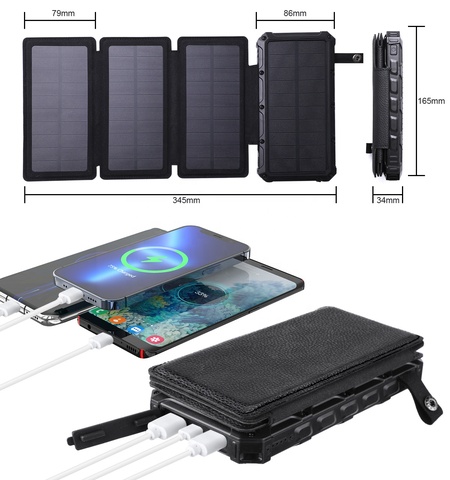30000 mAh 1 + 3 panel năng lượng mặt trời ngân hàng điện 30000 mAh cáp kép có thể gập lại không dây sạc năng lượng mặt trời ngân hàng điện với thuốc lá nhẹ hơn